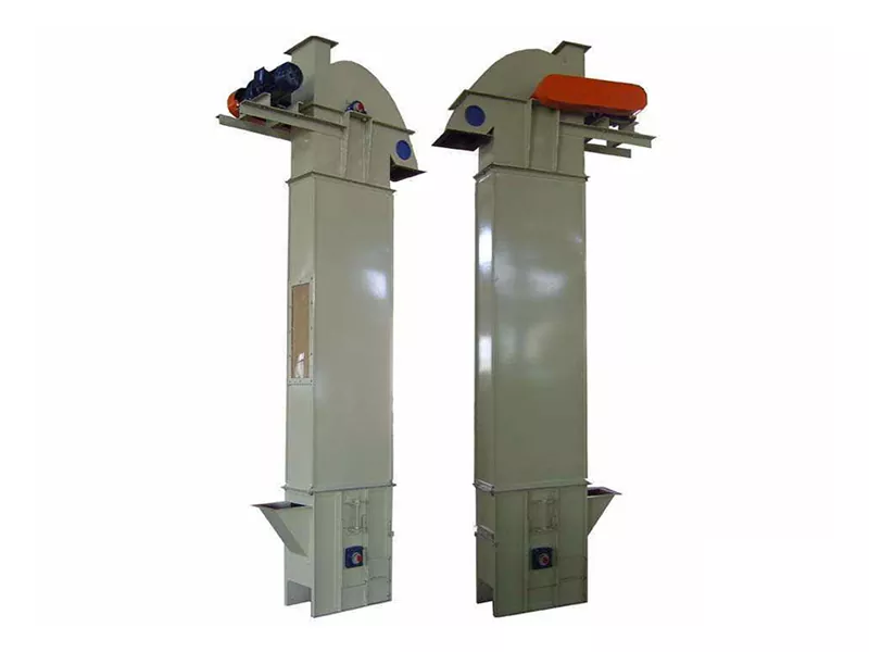 Zbiornik zbiera materiał z przechowywania poniżej, a ponieważ przenośnik paska lub łańcuch jest żyje na górze, staje się w dół po ominięciu koła podnoszącego, a winda wiadra piersi materiał do gniazda odbierającego. Podnośnik napędu napędowego pasa windowego z gumową pasem, zainstalowany w następnym lub nad przenoszeniem i górnym i dolnym stroną bębna łańcuchowego. Drive Strock, pod lub powyżej, jest para zmiany łańcucha, winda wiadra jest wyposażona w obudowę, aby zapobiec kurzu w windzie wiadra.