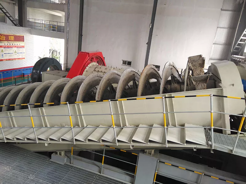 Zanurzony spiralny klasyfikator jest urządzeniem oceniającym, które wykorzystuje zasadę, że cząsteczki stałe o różnych rozmiarach i ciężarach właściwych mają różne prędkości osiadania w cieczach. Cząstki drobnych rudy unoszą się w wodzie i przepełnione, podczas gdy cząsteczki gruboziarnistej rudy opadają na dno zbiornika i są zepchnięte do górnej części przez spiralę w celu wyładowania. Spirala obraca się z niską prędkością, mieszając zawiesinę, tak że drobne cząsteczki są zawieszone na powierzchni i przepełnione jeździe przepełnione, podczas gdy gruboziarniste cząstki opadają na dno zbiornika i są transportowane do portu rozładowania przez spiralę w celu rozładowania jako powrót piasku.